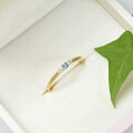 本日無事に届きました。きれいなブルーにみとれます。とても目立つので石の小ささが気になりません。リングのミル打ちも素敵。ツヤツヤのシルバーリングと重ねたら、ブルーが一層引き立つような気がしました。
