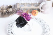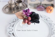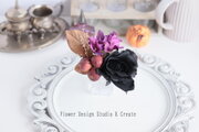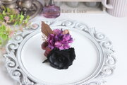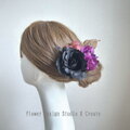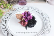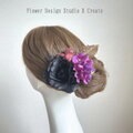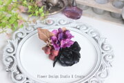 パーティー・ダンス髪飾りに♡黒い薔薇とパープルの紫陽花とイチジクのアレンジUピン ハロウィン 袴 黒 黒い薔薇 紫 フラメンコ