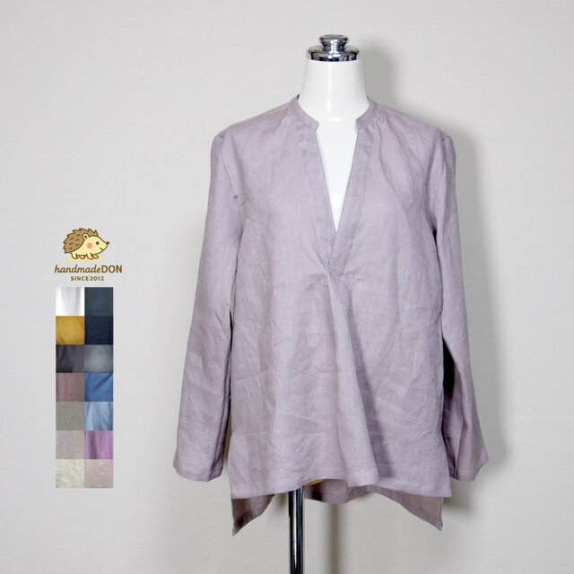 リネン◆スキッパーブラウス◆オールドモーブ◆フリーサイズ(中厚、リネン100%)
