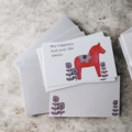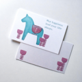 名刺サイズのツヤなし厚手の小ぶりなカードと厚手ミニ封筒の5組セットになります。