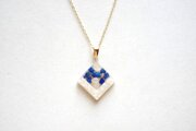 透明のレジンにホワイトシェルとラピスラズリのさざれを沈め、光沢のあるホワイトで囲ったペンダント。