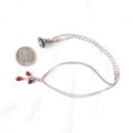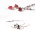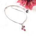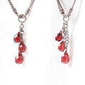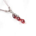 カットがキラリと輝き透明感のある真紅のガーネットをトップに連ねて、グレー色のシルクコードと合わせた上品な雰囲気のペンダントです。