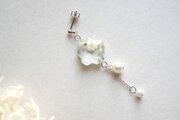 レジンアート 凹凸モチーフとコットンパールのピアス〈舞花〉(シルバー)