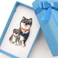 【ほっこり仲良し!親子黒柴の七宝焼ブローチ】