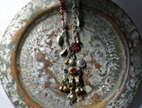 多彩oldアフガンメタルとチェーン、聖者のビーズ、深紅ヴェネチアビーズ、民族鈴などを繋いだネックレスです。