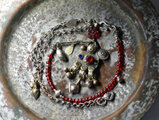 多彩oldアフガンメタルとチェーン、聖者のビーズ、深紅ヴェネチアビーズ、民族鈴のネックレス