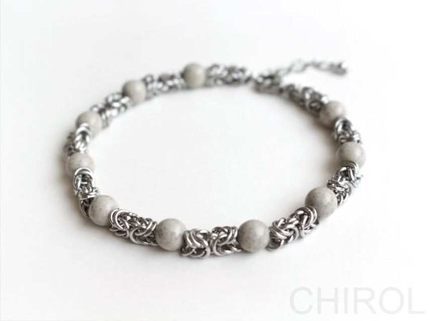 ★北投石をサージカルステンレスの丸カンをチェーン(ビザンチン)で繋いだブレスレットです