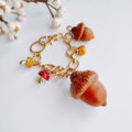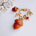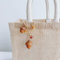 ゴールドの金具に赤と黄色のきのこのチャームが