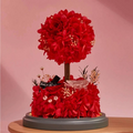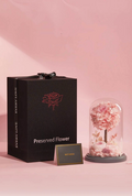 約14.5 x 14.5 x 21 cmのこの作品は、高級感のあるガラスカバーが付属しており、どなたにも安心してお贈りいただけます。また、ボックスは花をほこりや湿気から守り、より長く保存することができます。