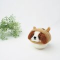 【受注製作】-夏限定- 夏休みコーデのまゆ柴犬の赤ちゃん(赤柴・黒柴・白柴) 羊毛フェルト帽子をしっかり被っていてデニムパンツもお似合い、とっても可愛いです。カバンに付けようと思っていましたが勿体無いので部屋に鎮座させておくことにします、ありがとうございました。