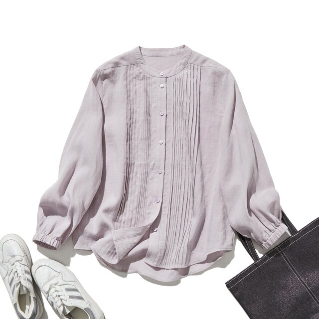 上品な佇まいと、心地よい着心地を兼ね備えた一枚 ピンタックシャツ リネンシャツブラウス 淡い藤色 251007-3