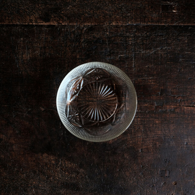 味のあるお品物◆アンティークプレスガラス小皿 古民家 古道具 骨董/antiques 大正〜昭和初期
