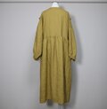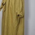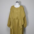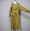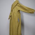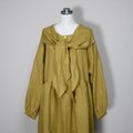 カラーリネン◆セーラーりぼんのふわっとワンピース 長袖◆マスタード◆フリーサイズ(中厚、リネン100%)