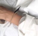 スクエアワイヤーで制作しているので光を反射する面が多く、動くたびにキラッと印象的な手元を演出してくれます。