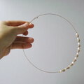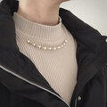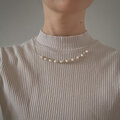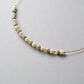 ベージュの水引で結った小さな玉結びと、淡水パールのコロコロとしたリズムが可愛らしいネックレス。ベージュの水引は柔らかな光沢を放ち、肌に自然と馴染む優しい色味です。