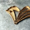 ゴールドトーンのオープンワークファンブローチ。