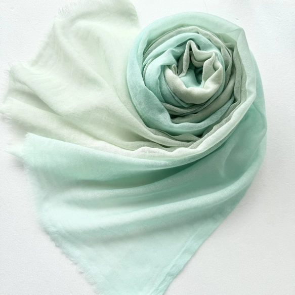 すてきなストールをありがとうございました!淡いグラデーションが上品でとても素敵です。白いコートにも黒いコートにも合いそうで楽しみです。さっそく使わせていただきます。