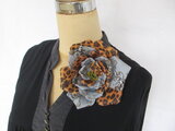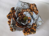 ヒョウ柄の生地を組み合わせた大きいバラコサージュです。