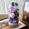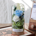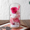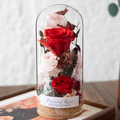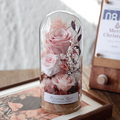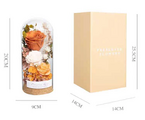 サイズは約9×9×20cm。高級感あふれるガラスカバー付きですので、どなたにも安心してお贈りいただけます。カバーは埃や湿気から花を守り、より長く美しい状態を保ちます。