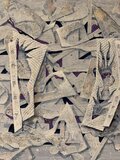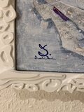 フレームも作家の手づくり。発泡スチロールに画材をコーティングして木のフレームに貼り付けていますので、フレームも作品としてとらえて下さい。