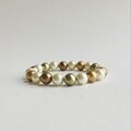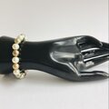 こちらはガラス素材の原玉に、オリジナルパール塗料にて何層にも渡り重ね塗りを施した日本製ガラスパールブレスレットになります。パールサイズは直径約10mm、長さは金具類含む全長約20cmに。パールカラーはきめ細かい質感と上品な艶感のオリジナルカラーパール各種をランダムに使用。オペロンゴムに通していますので脱着も手軽です。