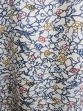 アイボリーの地色に、グレーがかった青、紫がかった赤等で花や鳥が描かれています。