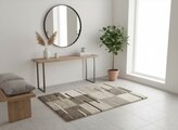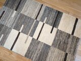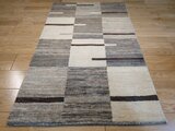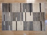 パターンブロックが絶妙に配置された、モダンでかつ天然羊毛による自然なグラデーション加減も相まり、優しさ、動きのあるデザインです。