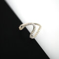 キュービックジルコニアを一粒ずつ丁寧にセッティングし、光を受けるたびに繊細な輝きを放ちます。流れるようなフォルムが指を長く、しなやかに見せてくれるのも魅力。