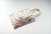 淡い桃色の華紋模様のシルク帯で製作したミニサブバッグです。
