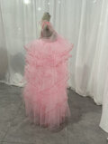 カラードレス 2ways キャミソール ピンク ラッフルフリル ふわふわ ロング 背中見せ 花嫁