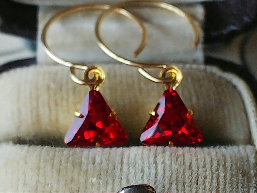 ヴィンテージ シャムRuby トライアングルGlass 14Kgfピアスまたはイヤリング