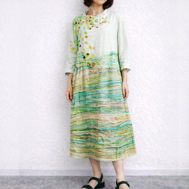 ガーゼ手描きワンピース【発生】一点もの(送料無料)