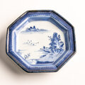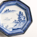 古伊万里 染付楼閣山水文 八角小皿 江戸後期