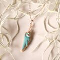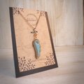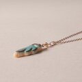 チェーンはすっきりしたアズキタイプの優しいコパー色を組み合わせました。ヘッドとの間にはブラウンのクリスタルビーズをひとつ挟みました。