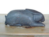 背中が蓋になっていて、中がくり抜かれている木彫りの置物。