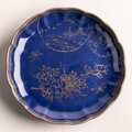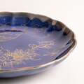 深い色合いの瑠璃釉に、金彩で蝶と牡丹、梅花や山水の絵が描かれています。