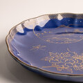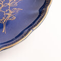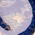 古伊万里 瑠璃釉金彩山水牡丹文七寸皿 明治時代 D717