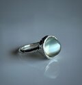 カボションカットが施されたグリーンムーンストーンをsilver925で一点もののリングに仕立てました。