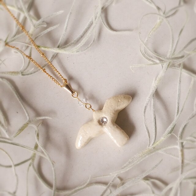 陶器ネックレス 小さな鳥 no.16 white
