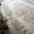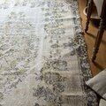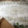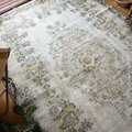 淡いベージュにほんのりとイエローやグリーン、ブラウンが重なった大判のトルコヴィンテージラグ。