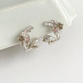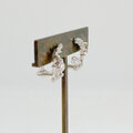 赤い実が特徴のサンザシの木で小さなコマドリが休憩しているクラシックな雰囲気漂うイヤリングです。サンザシの実に見立てたシャンパンガーネットとスモーキークォーツは目立ちすぎず暖色系の肌なじみの良いカラーリングです。コマドリは小さいながらも羽が折り重なった様子や毛並みまで再現されており今にも囀りが聞こえてきそうです。