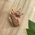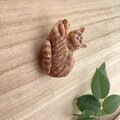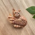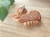 トラ猫さんの朝知らせ(木彫りの猫のブローチ)