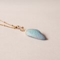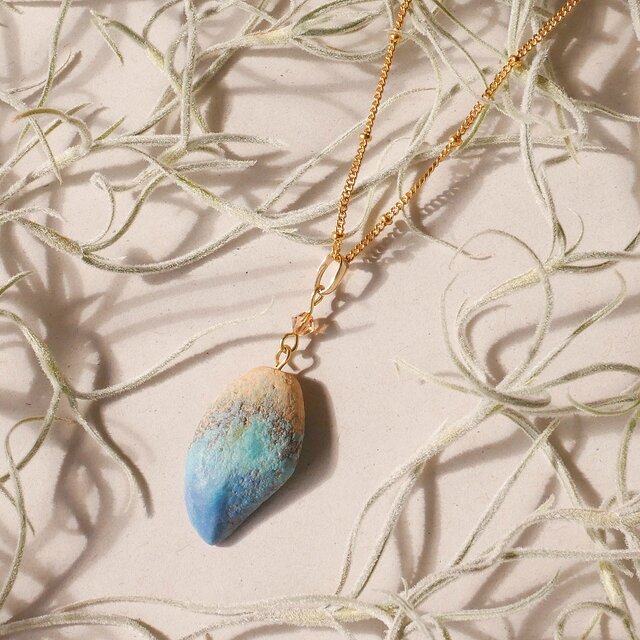ふっくらとして先がシャープなこのはの形のネックレスです。陶土は軽くて吸湿性があり肌に優しい素材です。