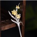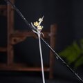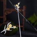 水仙の花のかんざしは、伝統的な美しさと現代的な感性が見事に調和しています。水仙の花びらは、繊細な彫刻と上品な色使いで、まるで本物の花が咲いているかのようです。葉っぱのデザインもまた、自然な形状と柔らかな曲線が魅力的で、全体に軽やかさと優雅さを添えています。このかんざしを身につけることで、装いに一段と華やかさが増し、特別な場面でも日常でも、洗練された印象を与えることでしょう。