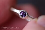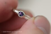 さてさて、作品に戻りますが、今回の石はバイカラーサファイア。一見パープルにしか見えないんですけど、スマホのライトを当ててよーく見てみてください。