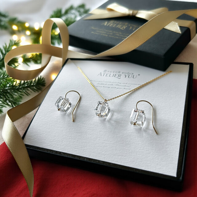 ✧ 氷標 Noël(こおりしるべ ノエル)✧ 14kgf クリスタル ネックレス&ピアス 送料無料・クリスマスギフトボックス入り