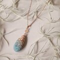 しずくの形に葉影模様が浮かぶネックレスです。両面お使い頂けます。陶土は軽くて吸湿性があり肌に優しい素材です。
