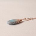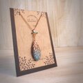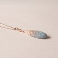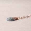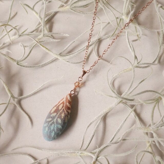しずくの形に葉影模様が浮かぶネックレスです。両面お使い頂けます。陶土は軽くて吸湿性があり肌に優しい素材です。