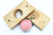 和菓子を成型する際に用いる木型。この木型を用いレザーを成形します。