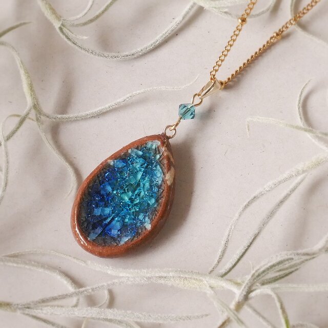 小さなみずたまりをイメージしたしずくの形のネックレスです。